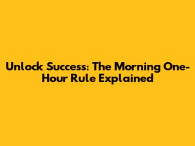 Unlock Success: The Morning One-Hour Rule Explained