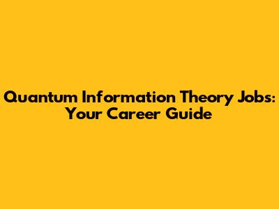 Quantum Information Theory Jobs: Your Career Guide