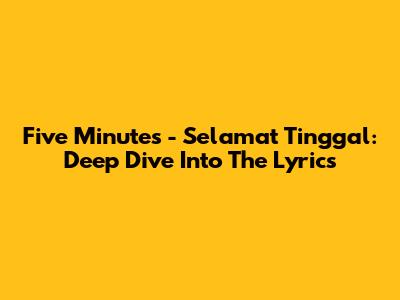 Five Minutes - Selamat Tinggal: Deep Dive Into The Lyrics