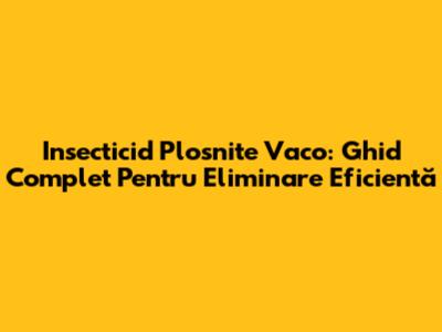 Insecticid Plosnite Vaco: Ghid Complet Pentru Eliminare Eficientă