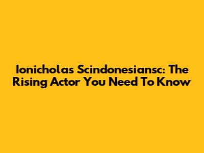 Ionicholas Scindonesiansc: The Rising Actor You Need To Know