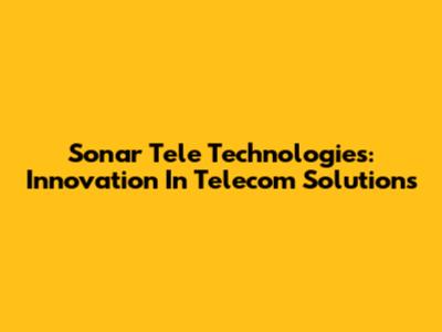 Sonar Tele Technologies: Innovation In Telecom Solutions