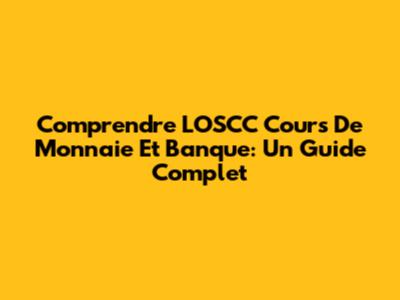 Comprendre L'OSCC Cours De Monnaie Et Banque: Un Guide Complet