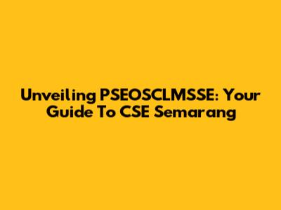 Unveiling PSEOSCLMSSE: Your Guide To CSE Semarang