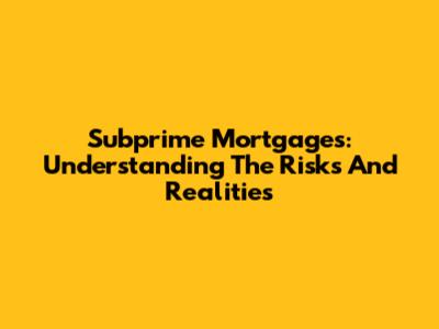 Subprime Mortgages: Understanding The Risks And Realities