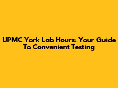 UPMC York Lab Hours: Your Guide To Convenient Testing
