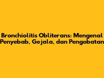 Pernahkah kamu mendengar tentang bronchiolitis obliterans? Mungkin terdengar asing, tapi kondisi ini cukup serius dan penting untuk dipahami. Bronchiolitis obliterans adalah penyakit paru-paru langka yang menyerang saluran udara kecil di paru-paru, yang disebut bronkiolus. Akibatnya, saluran udara ini meradang dan mengalami jaringan parut, yang menghambat aliran udara dan menyebabkan berbagai masalah pernapasan. Yuk, kita bahas lebih lanjut mengenai apa itu bronchiolitis obliterans, penyebabnya, gejalanya, dan bagaimana cara mengobatinya.
