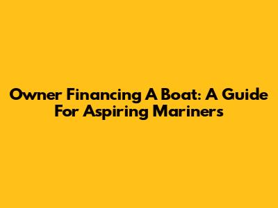 Owner Financing A Boat: A Guide For Aspiring Mariners