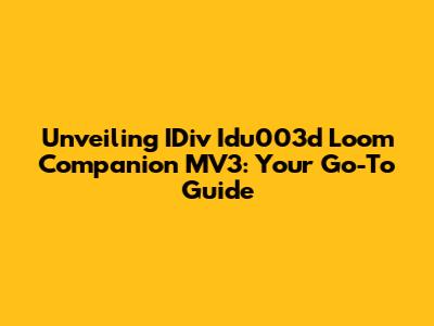 Unveiling IDiv Idu003d Loom Companion MV3: Your Go-To Guide