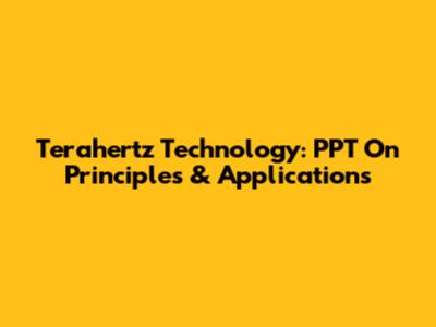 Terahertz Technology: PPT On Principles & Applications