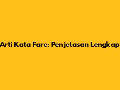 Arti Kata Fare: Penjelasan Lengkap