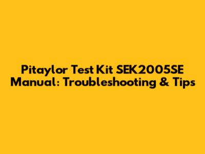 Pitaylor Test Kit SEK2005SE Manual: Troubleshooting & Tips