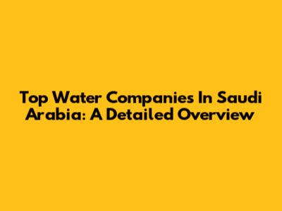 Top Water Companies In Saudi Arabia: A Detailed Overview