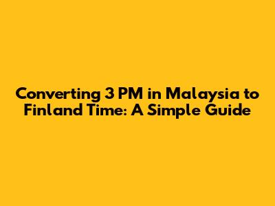 - During EEST (Daylight Saving Time): 3 PM in Malaysia is 10 AM in Finland.