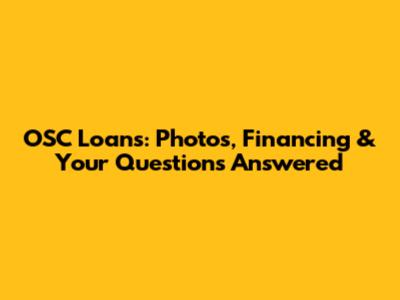 OSC Loans: Photos, Financing & Your Questions Answered