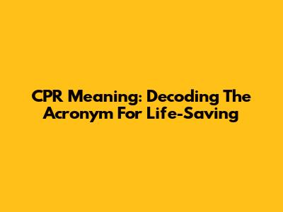 CPR Meaning: Decoding The Acronym For Life-Saving