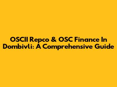 OSCII Repco & OSC Finance In Dombivli: A Comprehensive Guide
