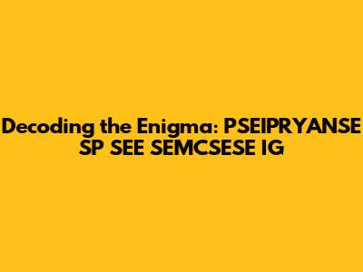 Have you ever stumbled upon a string of seemingly random letters and wondered what on earth it could mean? Today, we're diving deep into the world of acronyms, specifically focusing on the mysterious "PSEIPRYANSE SP SEE SEMCSESE IG." Now, I know what you're thinking: that looks like alphabet soup! But fear not, my friends, because we're going to break it down, explore the possibilities, and maybe, just maybe, figure out what this cryptic combination could represent.