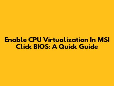 Enable CPU Virtualization In MSI Click BIOS: A Quick Guide