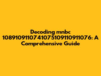Hey guys! Ever stumbled upon something that looks like a random string of characters and numbers and thought, "What on earth is this?" Today, we're diving deep into one such enigma: mnbc 1089109110741075109110911076. This guide will break down what this alphanumeric code could potentially represent, explore its possible origins, and provide some insights into how to decipher similar mysterious strings you might encounter in the wild. So, buckle up, grab your decoder rings (not really, but the sentiment is there!), and let’s get started!