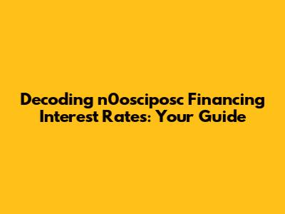 Staying Informed About n0osciposc Financing Interest Rates