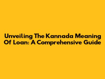 Unveiling The Kannada Meaning Of 'Loan': A Comprehensive Guide