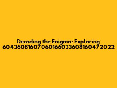 Unraveling the Mystery: What Exactly IS 60436081607060166033608160472022?