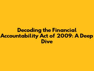 Hey folks, let's dive into something super important: the Financial Accountability Act of 2009. This piece of legislation is a big deal, especially when we talk about financial regulations and how the government handles our money. We're going to break down what this act is all about, why it matters, and how it's shaped the financial landscape. Think of it as your go-to guide to understanding how the U.S. government keeps its finances in check. So, buckle up, because we're about to embark on a journey through the ins and outs of this crucial law! The Financial Accountability Act of 2009 aimed to bring about significant changes in how the government manages its financial affairs. Its primary focus was to enhance government transparency and ensure more rigorous financial oversight. The act was a direct response to various economic challenges and the need for greater fiscal responsibility. In essence, it set out to create a more robust system of budget management and strengthen regulatory compliance within the financial sector. Understanding this act is key to grasping the broader context of economic reform efforts in the early 21st century and how they impact public finance. This act touched on various critical aspects of economic policy, pushing for better practices and accountability.