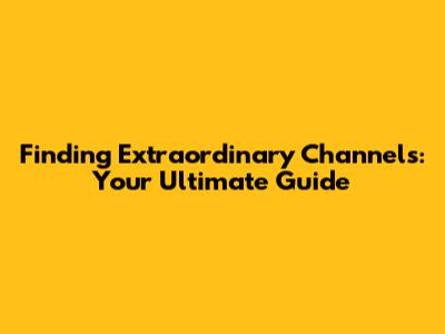 Finding Extraordinary Channels: Your Ultimate Guide