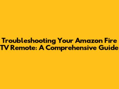 Troubleshooting Your Amazon Fire TV Remote: A Comprehensive Guide