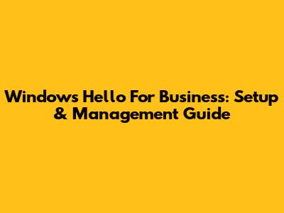 Windows Hello For Business: Setup & Management Guide