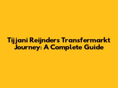 Tijjani Reijnders' Transfermarkt Journey: A Complete Guide