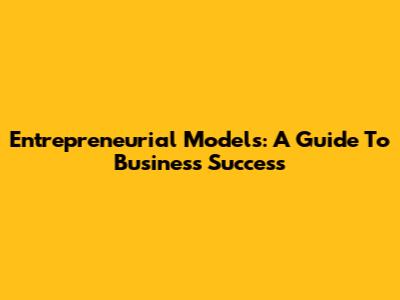 Entrepreneurial Models: A Guide To Business Success