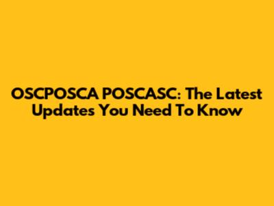 OSCPOSCA POSCASC: The Latest Updates You Need To Know