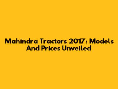 Mahindra Tractors 2017: Models And Prices Unveiled