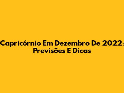 Capricórnio Em Dezembro De 2022: Previsões E Dicas