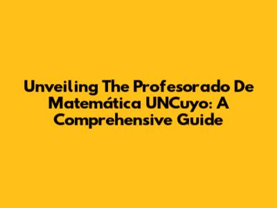 Unveiling The Profesorado De Matemática UNCuyo: A Comprehensive Guide