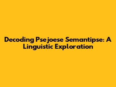 Decoding Psejoese Semantipse: A Linguistic Exploration