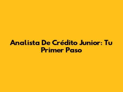 Analista De Crédito Junior: Tu Primer Paso