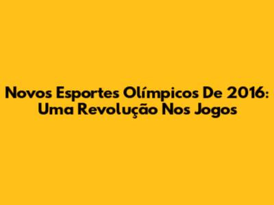 Novos Esportes Olímpicos De 2016: Uma Revolução Nos Jogos