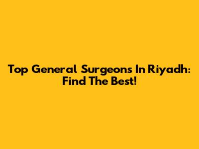 Top General Surgeons In Riyadh: Find The Best!