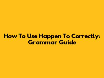 How To Use 'Happen To' Correctly: Grammar Guide
