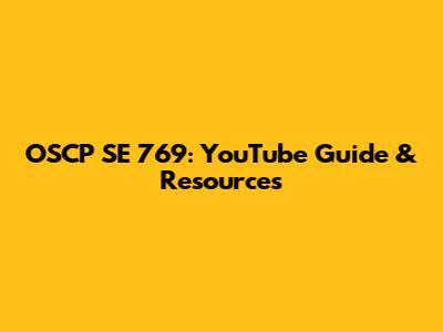 OSCP SE 769: YouTube Guide & Resources