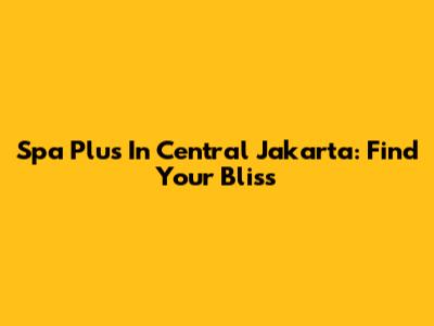 Spa Plus In Central Jakarta: Find Your Bliss