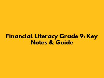 Financial Literacy Grade 9: Key Notes & Guide