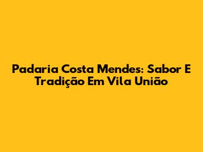 Padaria Costa Mendes: Sabor E Tradição Em Vila União