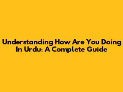 Understanding 'How Are You Doing' In Urdu: A Complete Guide