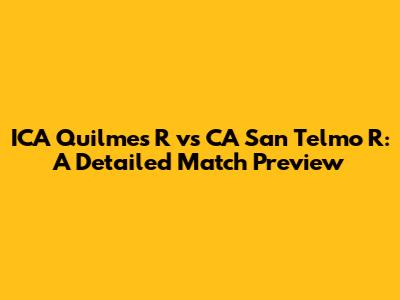 Hey guys! Get ready for an exciting showdown as we dive deep into the upcoming match between ICA Quilmes R and CA San Telmo R. This isn't just your average game; it's a clash of titans (well, maybe not titans, but definitely two teams eager to prove their mettle!). We're going to break down everything you need to know, from their recent form to key players, and even some predictions to spice things up. So, buckle up and let's get started!