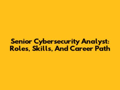 Senior Cybersecurity Analyst: Roles, Skills, And Career Path