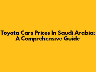 Toyota Cars Prices In Saudi Arabia: A Comprehensive Guide